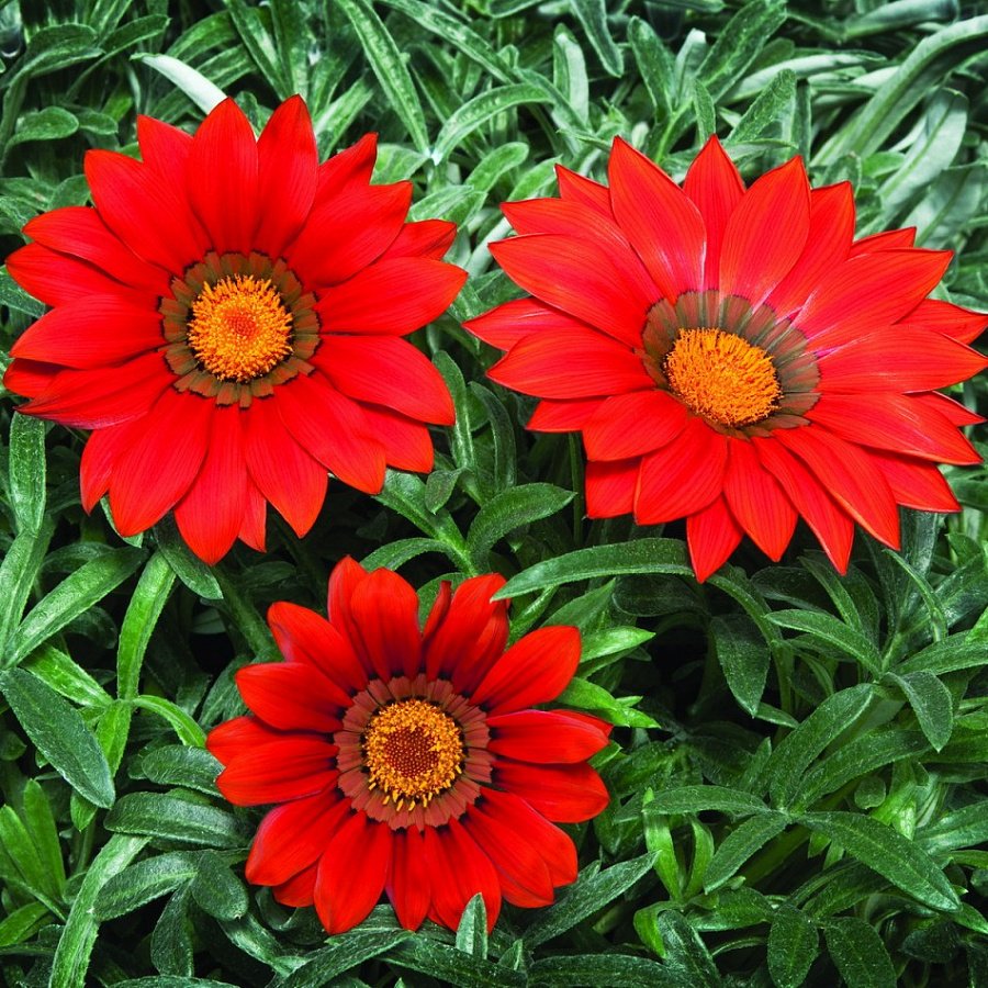Газания Frosty Kiss Red - это великолепное растение с красивыми красными цветками, которые будут радовать ваш взгляд в течение всего лета. Сорт отличается компактным размером до 25 см и диаметром до 7 см, что делает его идеальным выбором для одиночных посадок. Листья газании имеют яркий зеленый оттенок, создавая прекрасный контраст с яркими цветками.