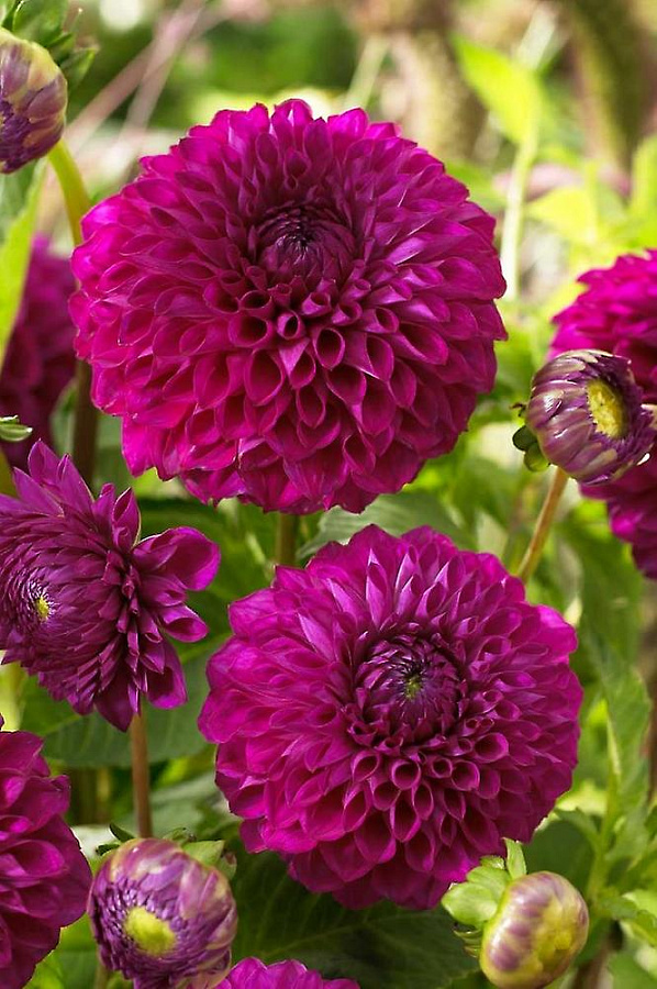 Луковицы георгины махровой Бум Пурпл (Boom Purple, DÁHLIA VARIABILIS) высаживаются в хорошо удобренную почву. Место выбирают солнечное, чтобы растение радовало обильным цветением до наступления стойких холодов. Декоративный сорт был выведен в 2004 году в Нидерландах. Цветки в диаметре до 12 сантиметров похожи на помпоны. Притягивает взгляд насыщенный фиолетово-розовый цвет и необычной формы лепестки. Высота куста достигает 110 сантиметров. Стебель прочный, но не помешает опора. С начала июня начинается активное цветение. Выращивают растение в саду, на клумбах, террасах.