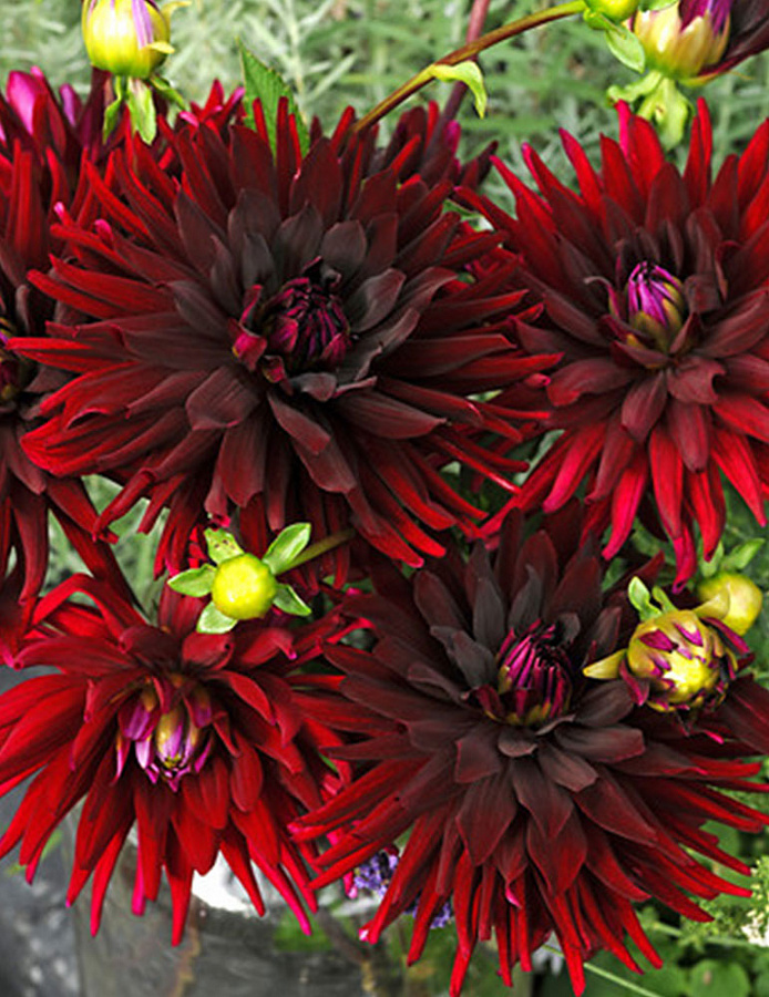 Этот «шарик» достигает в диаметре 22 см, он окрашен в густой бордовый цвет, темнеющий к центру. Высота растения около метра, период цветения — с середины лета по октябрь.
