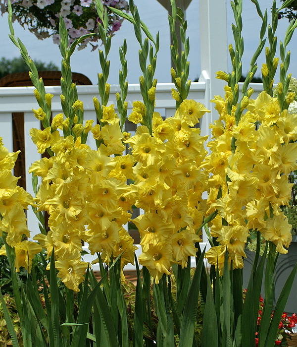 Луковицы гладиолуса гибридного Jacksonville Gold порадуют крупными желтыми цветами, которые будут украшать ваш загородный участок с июля до сентября. Высота взрослого растения достигает 110 сантиметров. Этот сорт идеально подходит для декорирования ограждений, садовых объектов, оформления садовых дорожек и создания ярких композиций. Для посадки луковиц гладиолуса гибридного Jacksonville Gold рекомендовано выбирать места на возвышенности, где исключена возможность скопления воды. Растение нуждается в хорошем освещении и защите от сквозного ветра. Почва должна быть легкой, рыхлой, удобренной органикой.
