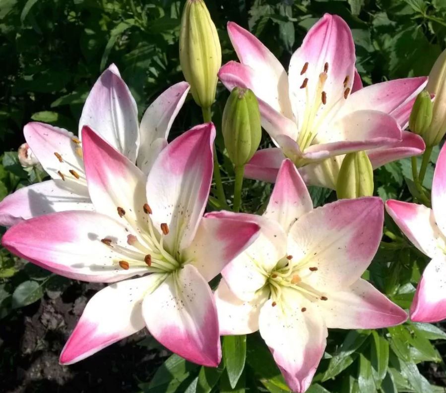 Окраска цветка : кремово-белый центр, нежно-розовые края лепестков, темно-бордовые пыльники