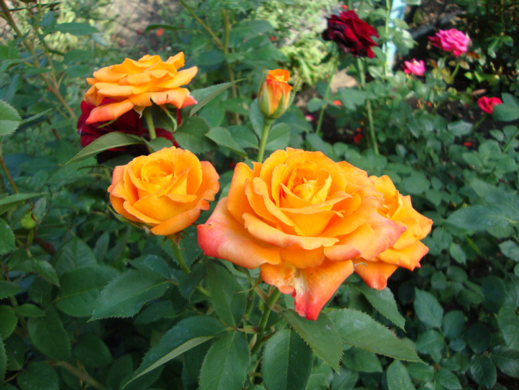 Саженцы розы чайно-гибридной Миракл (Miracle) относятся к тем сортам, которые будут радовать вас прекрасным продолжительным цветением и в жару, и в дождь. Высота кустов – 100 сантиметров. Диаметр цветков 8-10 сантиметров. Лепестки имеют ярко-оранжевый цвет с красноватым оттенком по краям. Сорт привлекает все больше любителей роз своим продолжительным и непрерывным цветением, которое длится на протяжении всего сезона. Количество лепестков в цветке небольшое, оно не превышает 30, но это компенсируется их необычной формой. Этот сорт имеет высокую устойчивость к заболеваниям и морозам.  Цветки обладают нежным, но ярко выраженным ароматом. В срезке они сохраняют свежесть до двух недель.