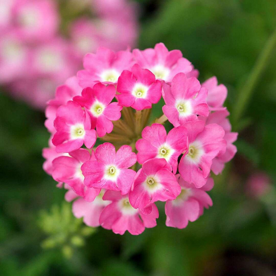 Растение вербена кварц пинк поражает своей изысканной красотой и неповторимым шармом. Ее стебель прочный и устойчивый, достигая высоты до 25 см, а диаметр цветка радует глаз своими 5-7 см. Листья вербены имеют элегантную форму и насыщенный зеленый оттенок, что придает растению особый шарм.