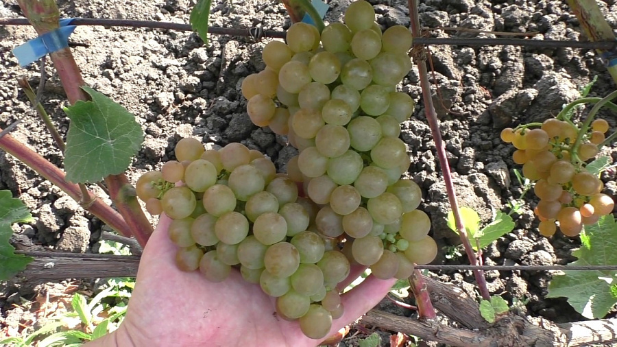 - заготовки изюма. Грозди белого винограда небольшого размера. Плоды зеленовато-белые с сочной, вкусной мякотью и тонкой, но прочной кожицей. Крупномер Платовский отлично себя чувствует практически на любой почве, но обильнее всего плодоносит на глинисто-известковых грунтах.