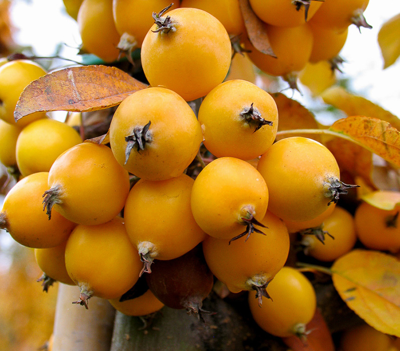 Саженец яблони декоративной Голден Хорнет (Golden Hornet) хорош в качестве украшения и приносит обильные плоды, остающиеся на дереве почти до зимних месяцев. Яблочки золотистого цвета хорошо выглядят на дереве серди зеленой листвы, подходят и для домашних заготовок. В период цветения яблоня Голден Хорнет также превосходна.